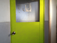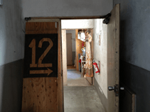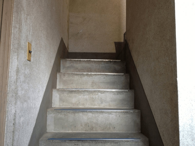 階段を上り廊下(マヌケ道)の先、正面の鉄製のドアの向こうに階段があります。