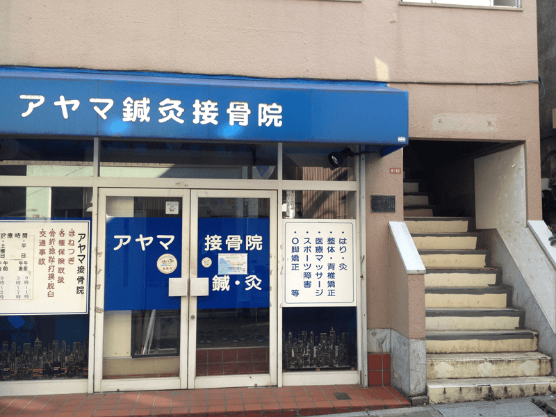 北中の極楽「アヤマ接骨院」の脇にある階段が『マヌケ宿泊所』の入り口です。